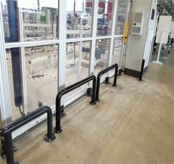 辦公區(qū)中庭玻璃處防撞柱現(xiàn)場安裝施工項目